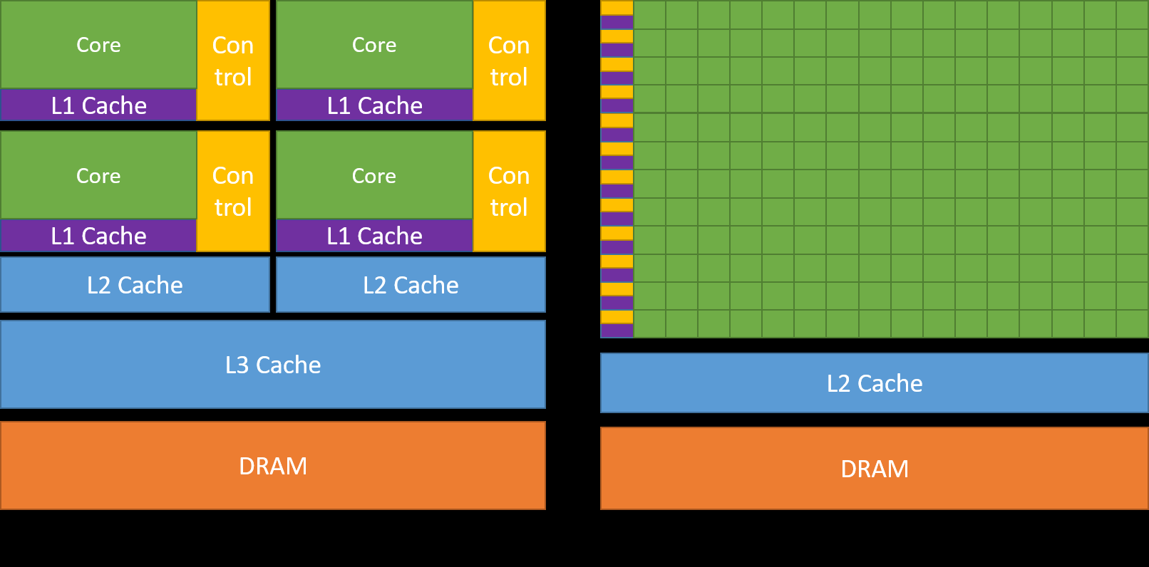 来源:http://docs.nvidia.com/cuda/cuda-c-programming-guide/_images/gpu-devotes-more-transistors-to-data-processing.png