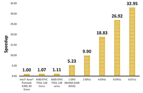 图5 利用GPU进行汽车空气动力学仿真的加速比[2]