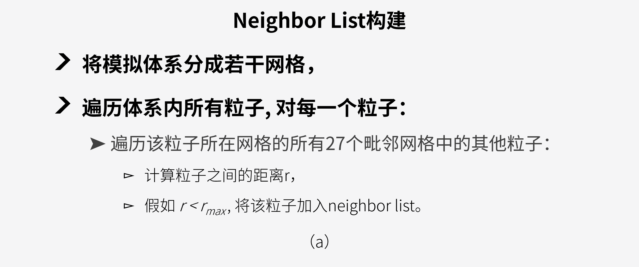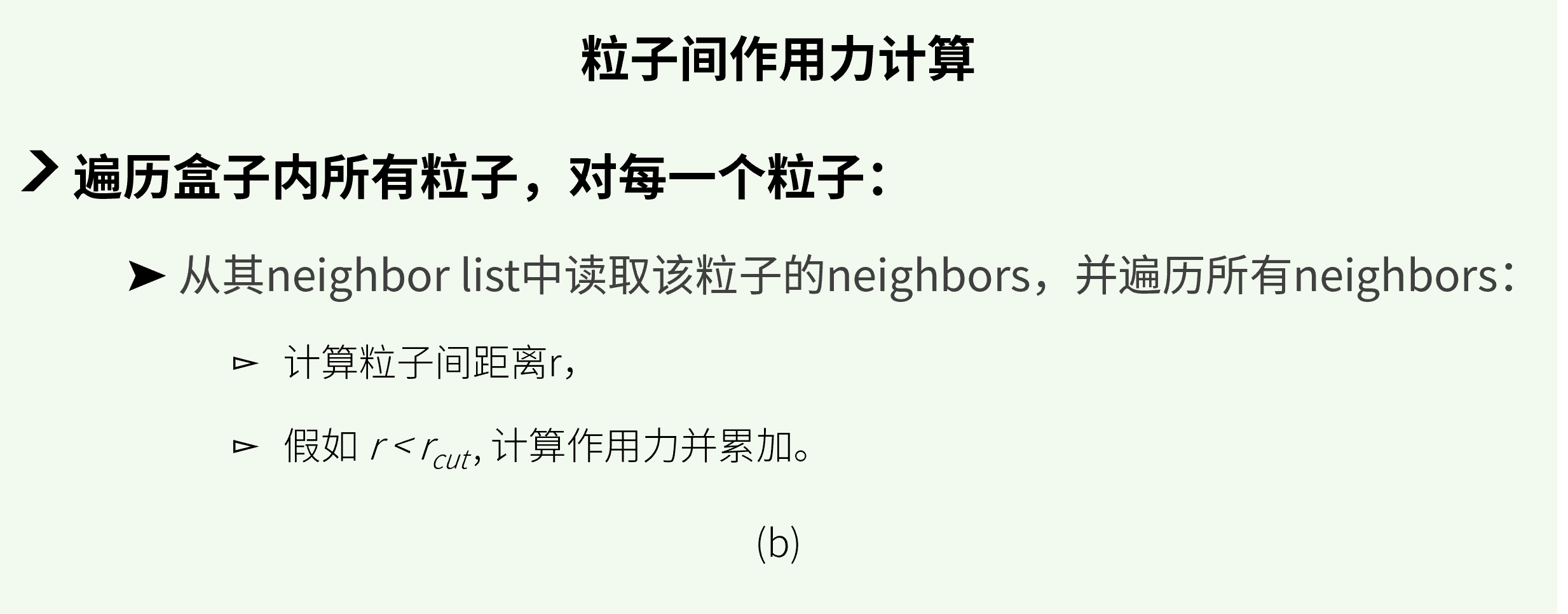 图4:近程力CPU计算模块:(a) neighbor list 构建, (b) 作用力计算。