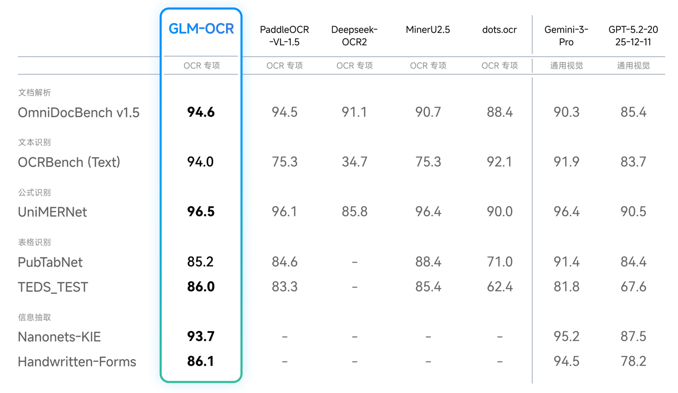 GLM-OCR作为一款轻量的专业级 OCR 模型,其核心亮点如下: