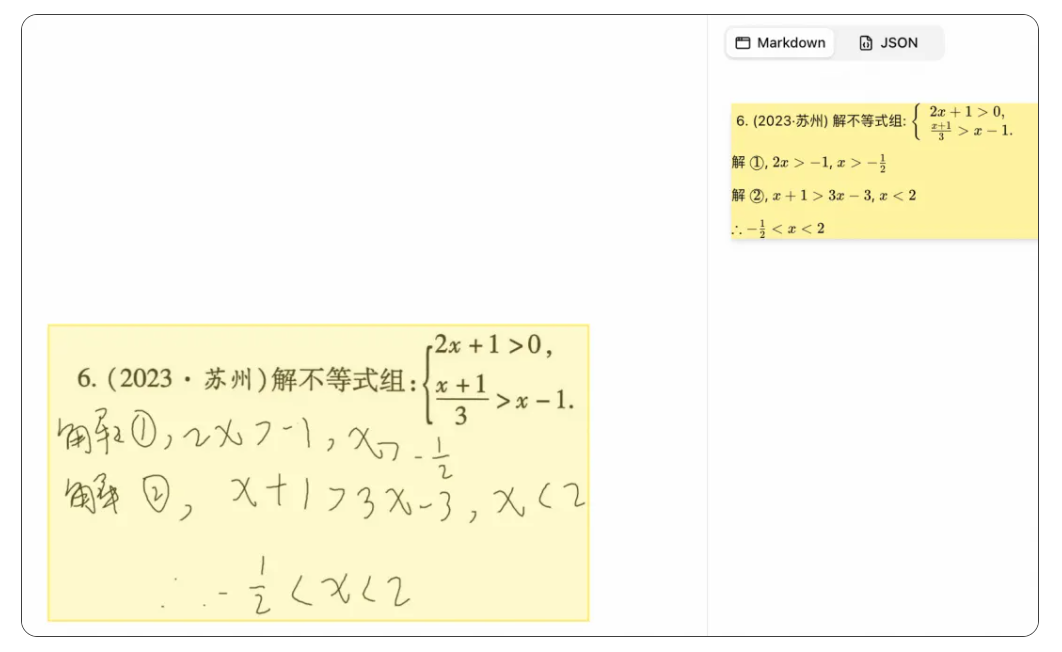 复杂表格解析:针对合并单元格、多层表头等复杂结构,模型能精准理解并直接输出 HTML 代码。无需二次制表,识别结果即可用于网页展示或数据处理,大幅提升表格录入与转换效率。
